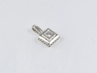 Zawieszka wykonana z białego złota pr. 0,585. W oprawie diament o szlifie brylantowym, masie ok. 0,17ct, barwie G, czystości VS. Masa wyrobu - 1,06 g. Cena wyrobu - 1 500 zł.
